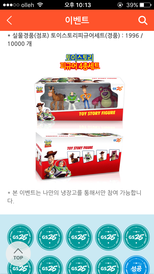 오늘 커피 마시고 싶어서 GS25 가서 커피 사고 나왔는데 좀 있다가 핸드폰에서 뭔 토이스토리 어쩌구 하고 알람이 오더라구요