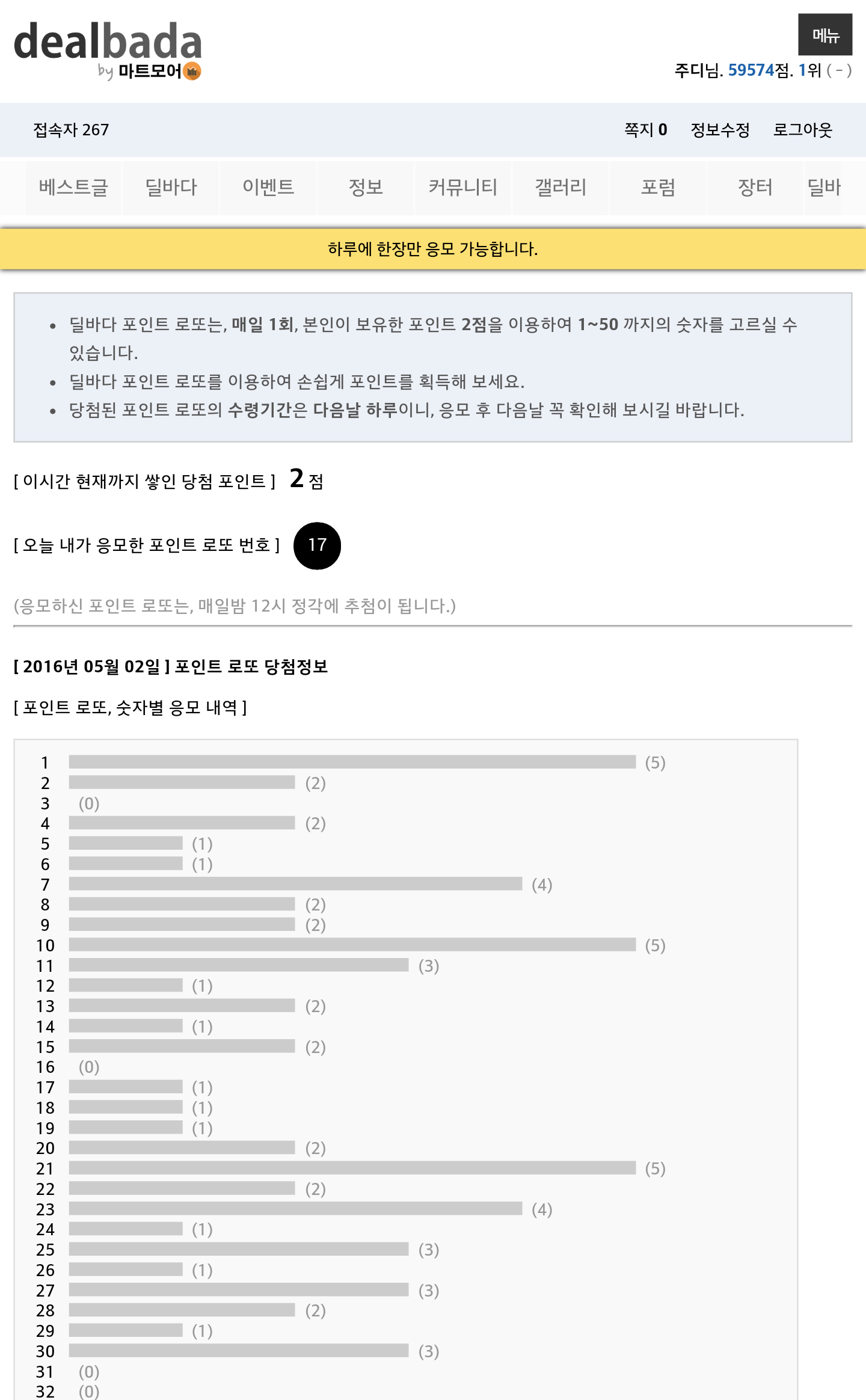 역시 빠르시네요ㅋㅋ 이번엔 17번으로 밀고계신건가요? |