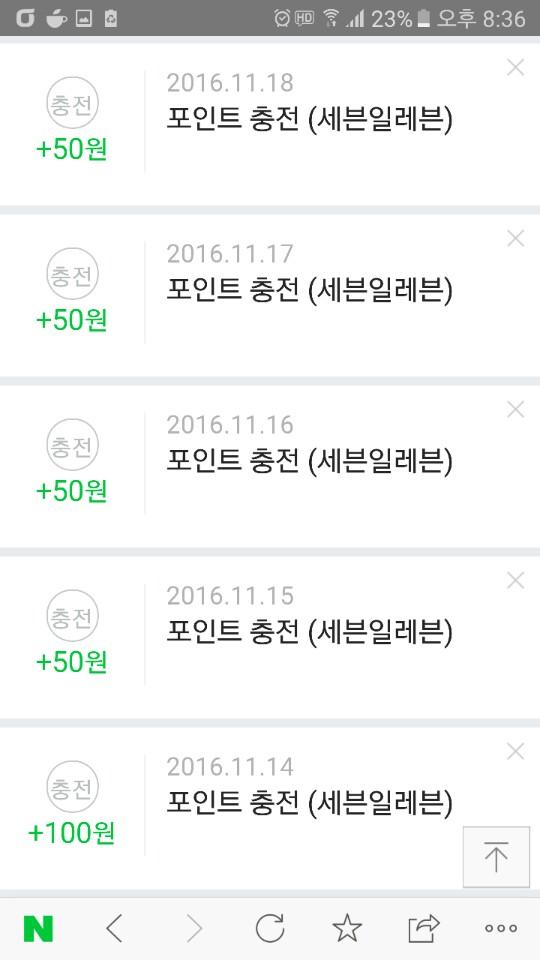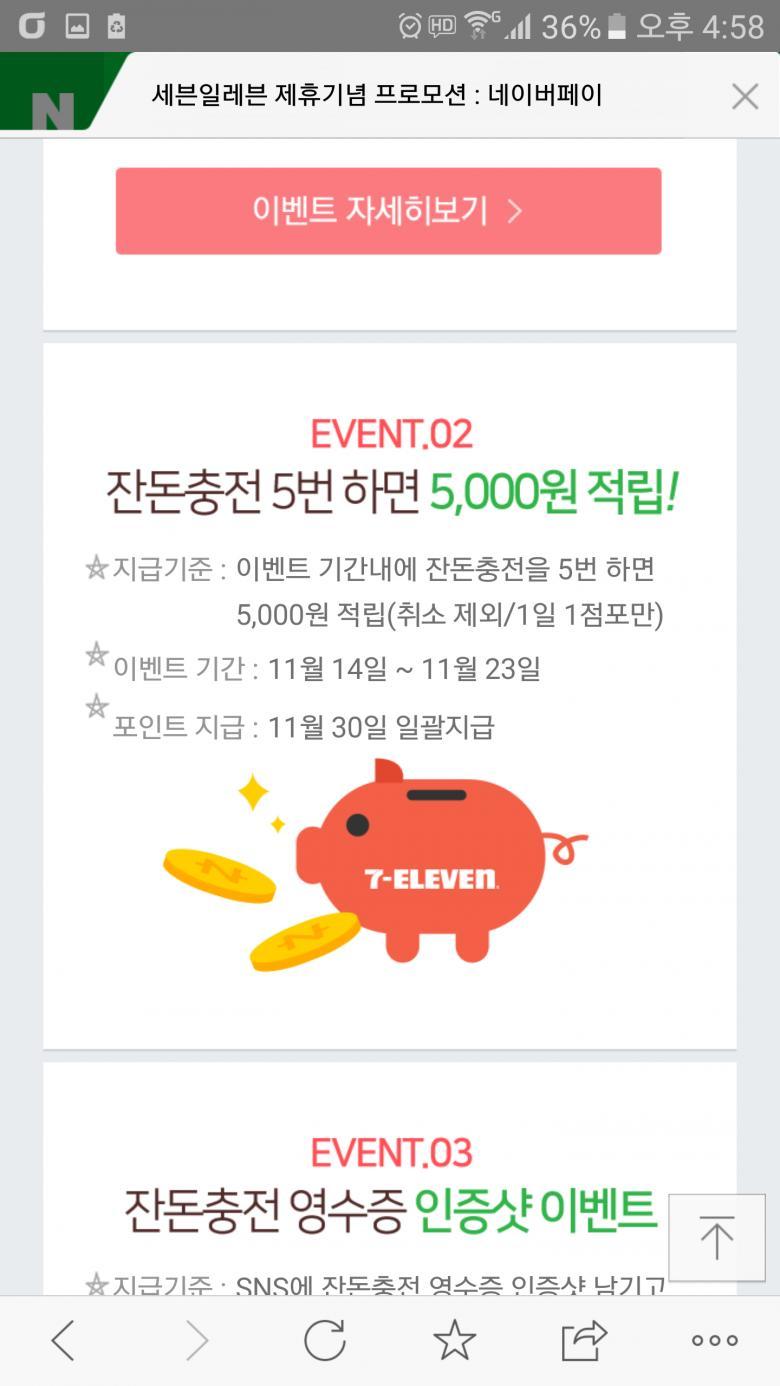 세븐일레븐 잔돈충전 이벤트 5일치 미션완료했네요! > 자유게시판