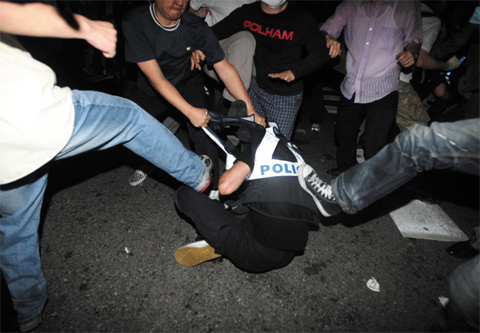 그래서 광우병때 시위가 평화시위였습니까?
