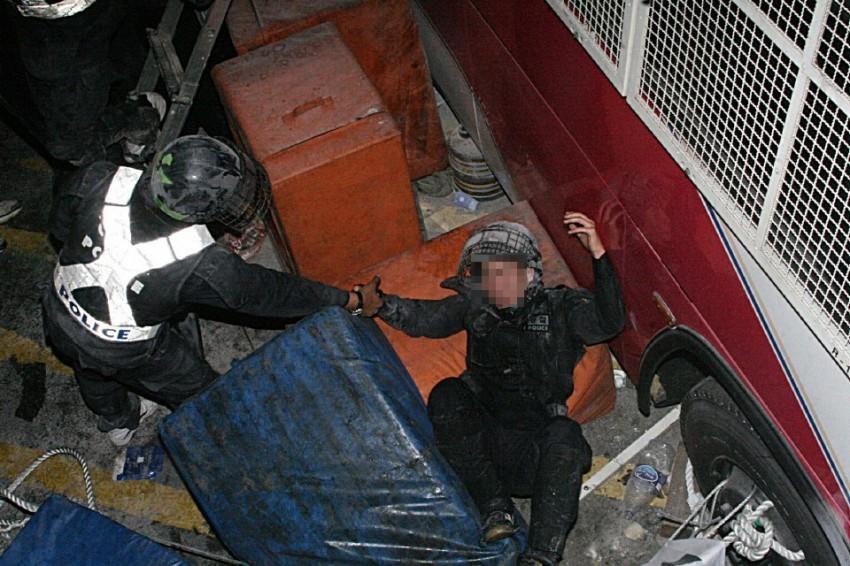 일선에 선 경찰들은 명찰있는 옷 위에 갑옷같은걸 덧입고 나오기 때문에 명찰이 안보인답니다 |