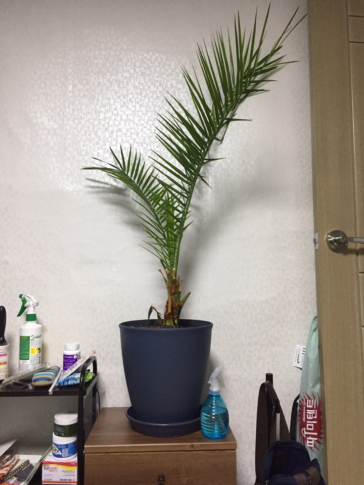 08년에 제주도 갔다가 야자씨앗 팔길래 사서 심어 키운 아이입니다 이 8년 키웠는데 분갈이를 그동안 안했더니