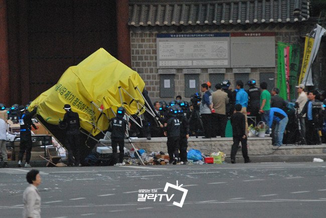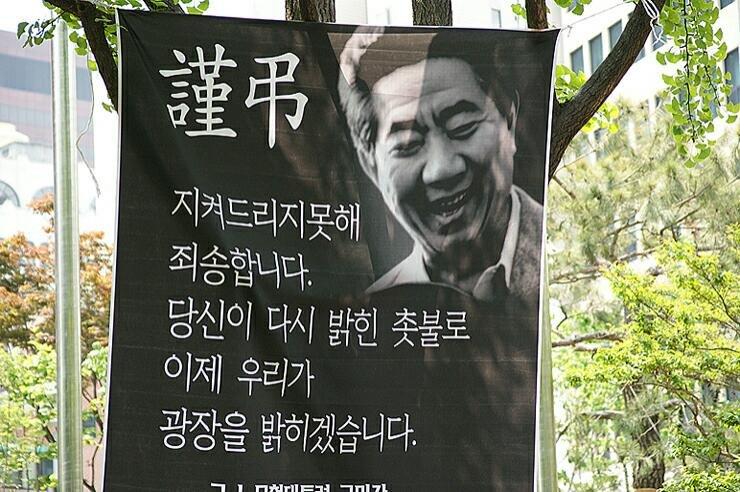 고 노무현 대통령 분향소를 견찰들 시켜서 때려부셨지요~