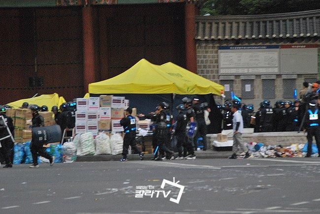 저건 그냥 차벽스타일이고, 명박산성스타일은 아마 콘테이너박스 일겁니다.