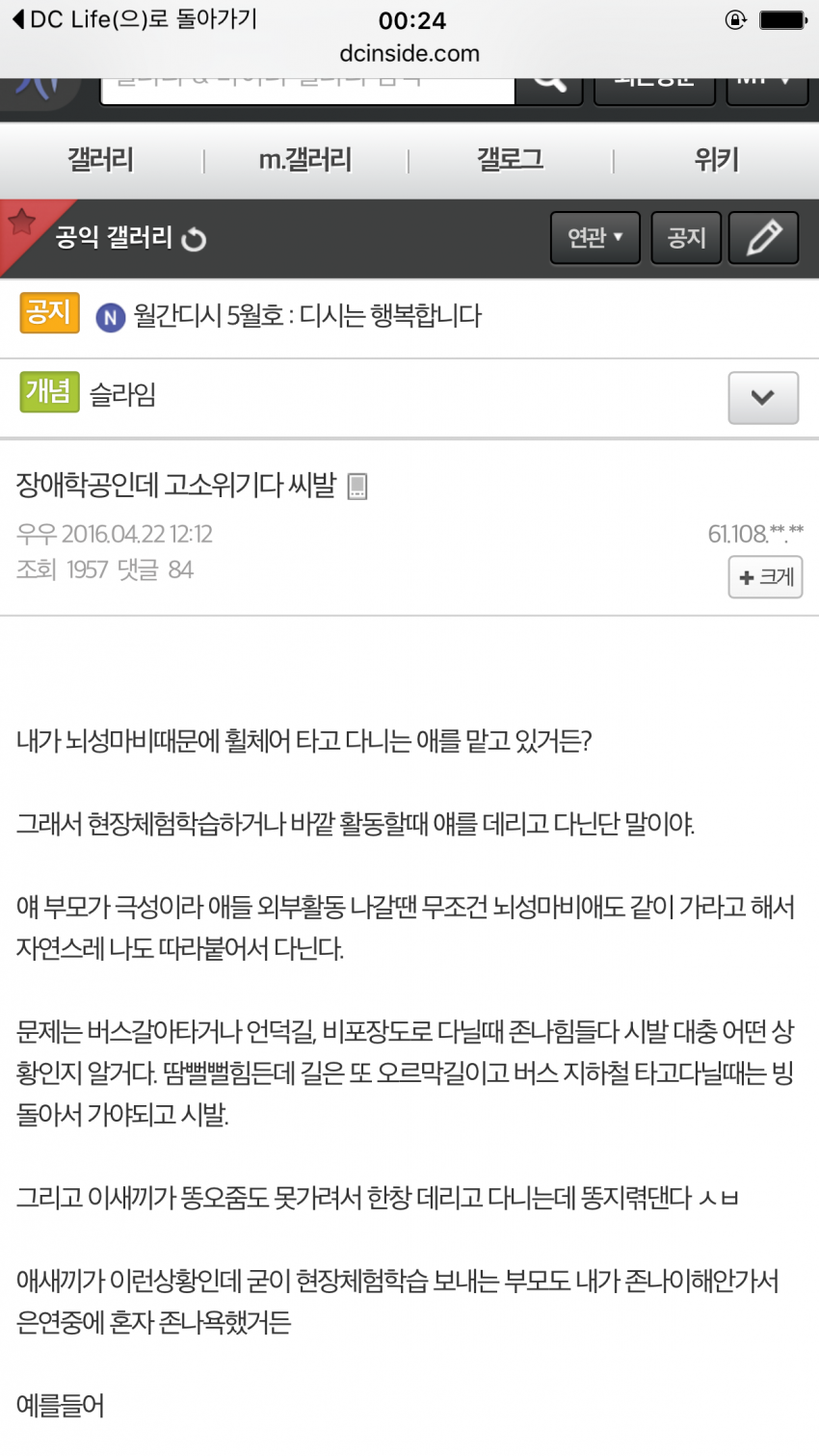 어휴 힘든건 알겠지만 장애아동도 다 듣는귀가 있는데 그걸 들리게 말하면 안되지 |