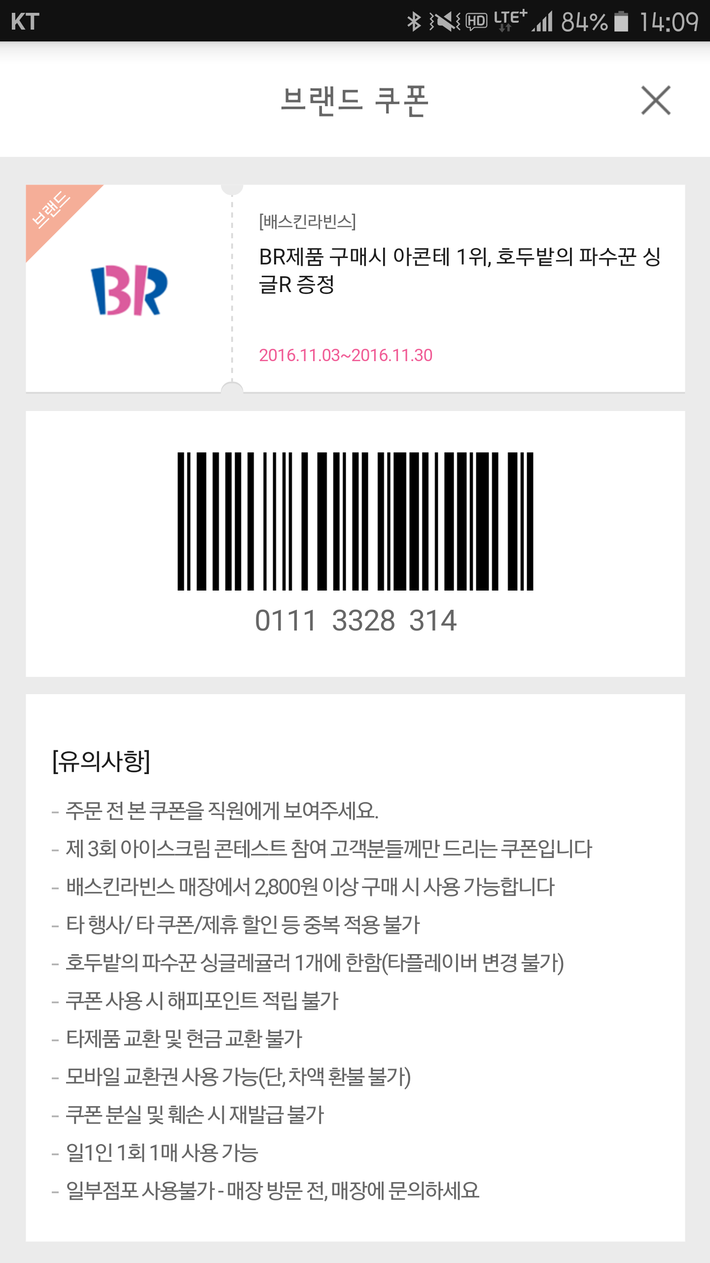 나쁜 남자 님께 나눔받은 베라쿠폰