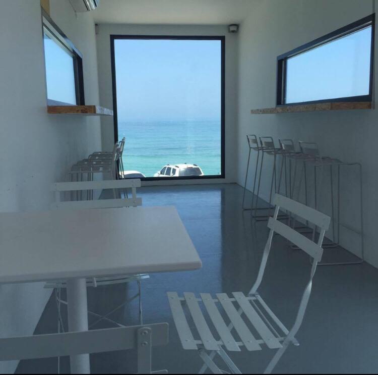 모양으로 봐선 임시주택 형태인데요.. 바닷가에 이동식 차량카페 같아 보이는데..어딘진 잘..