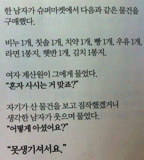 남 : 그쪽도 혼자 사시나봐요(찡긋) | ||