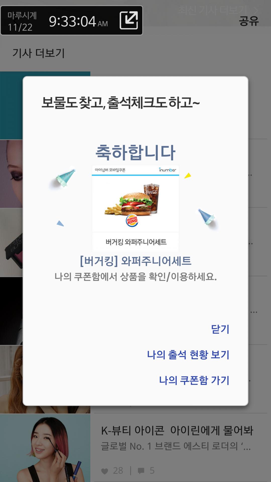 저도 투썸만 계속 나오다 버거킹 첨이라 좋네요ㅎㅎㅎ |