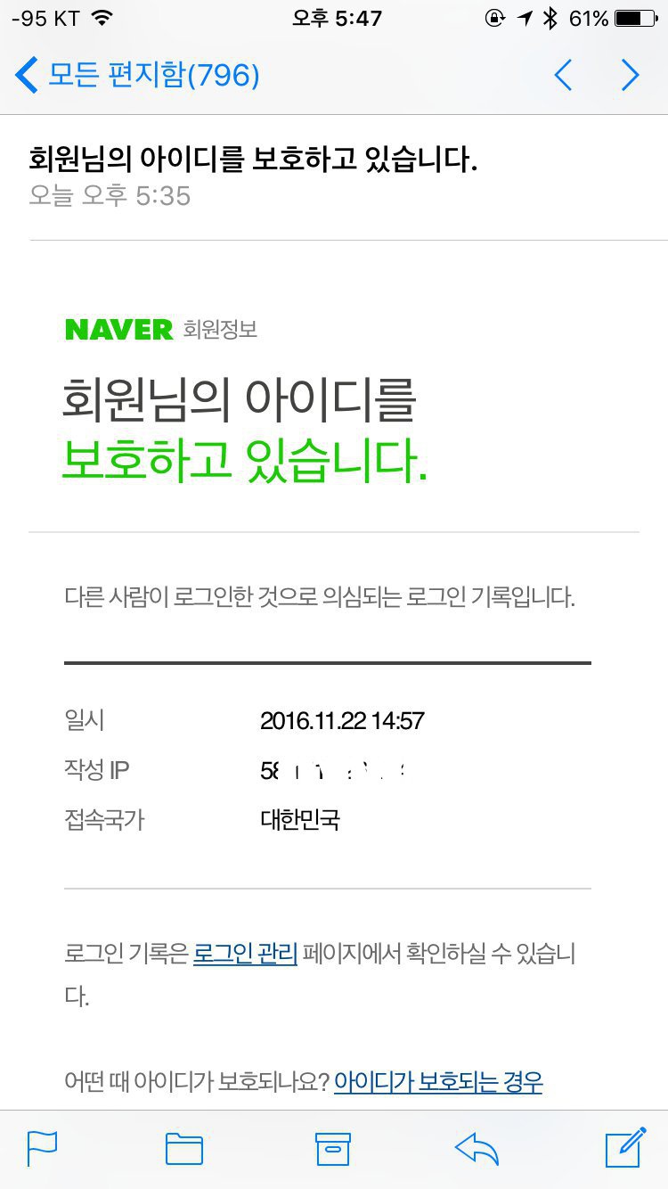 우와... 방금 네이버 id 털릴뻔...