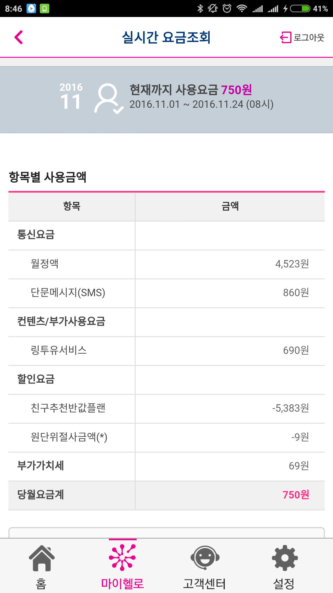 친구추천 전부 다 채워서 50프로 할인되는데 이상하게 9월 10월 그리고 이번달까지 기본료보다 친구추천할인되는 금액이 더 크네요...ㄷㄷ