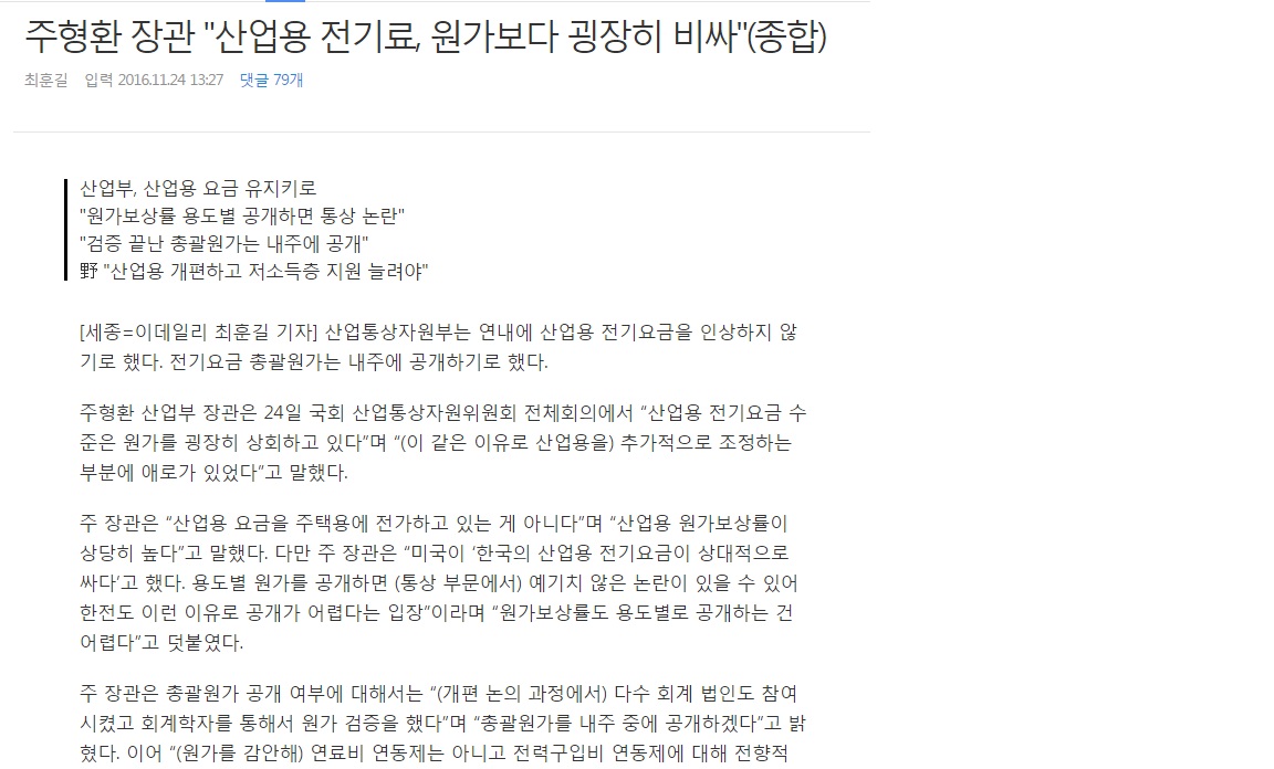 물타기 하고 있네요. 포인트는 가정용전기세가 과도하게 비싸게 책정이 되었다에 맞춰져야 되는건데요. |