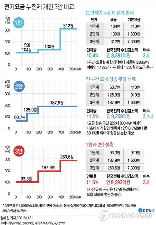 그나마 2안이 우리집에 적용할 때 좀 득을 볼듯요 11월 전기세가 11만원 나왔어요 |