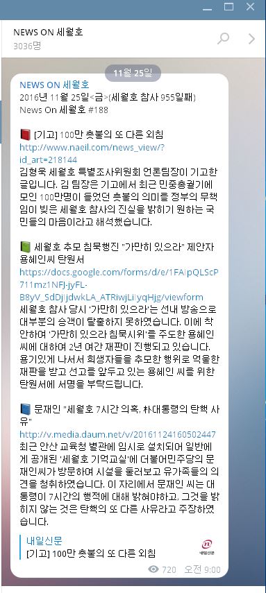 텔레그램으로 받은 오늘자 세월호 뉴스에요