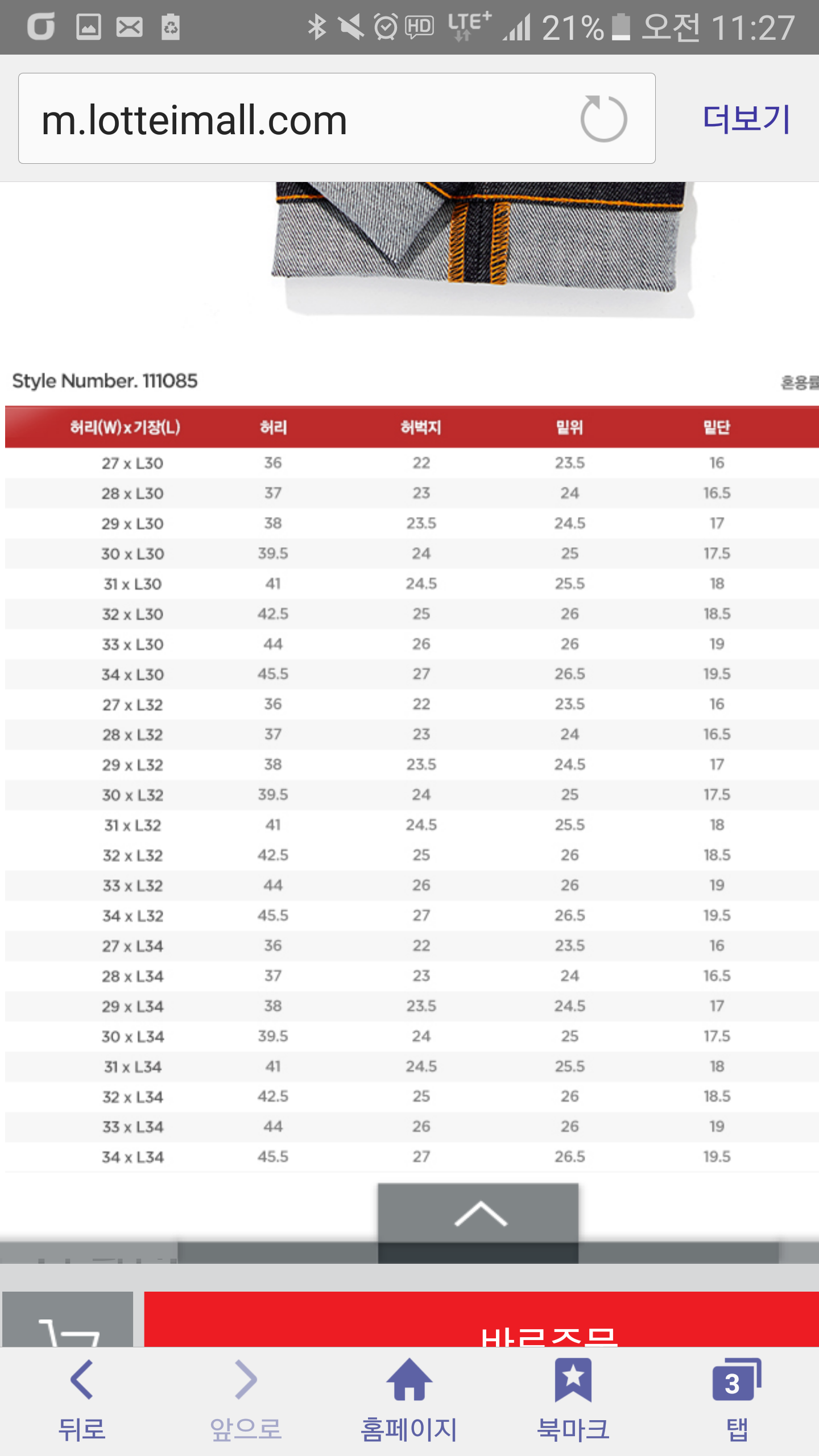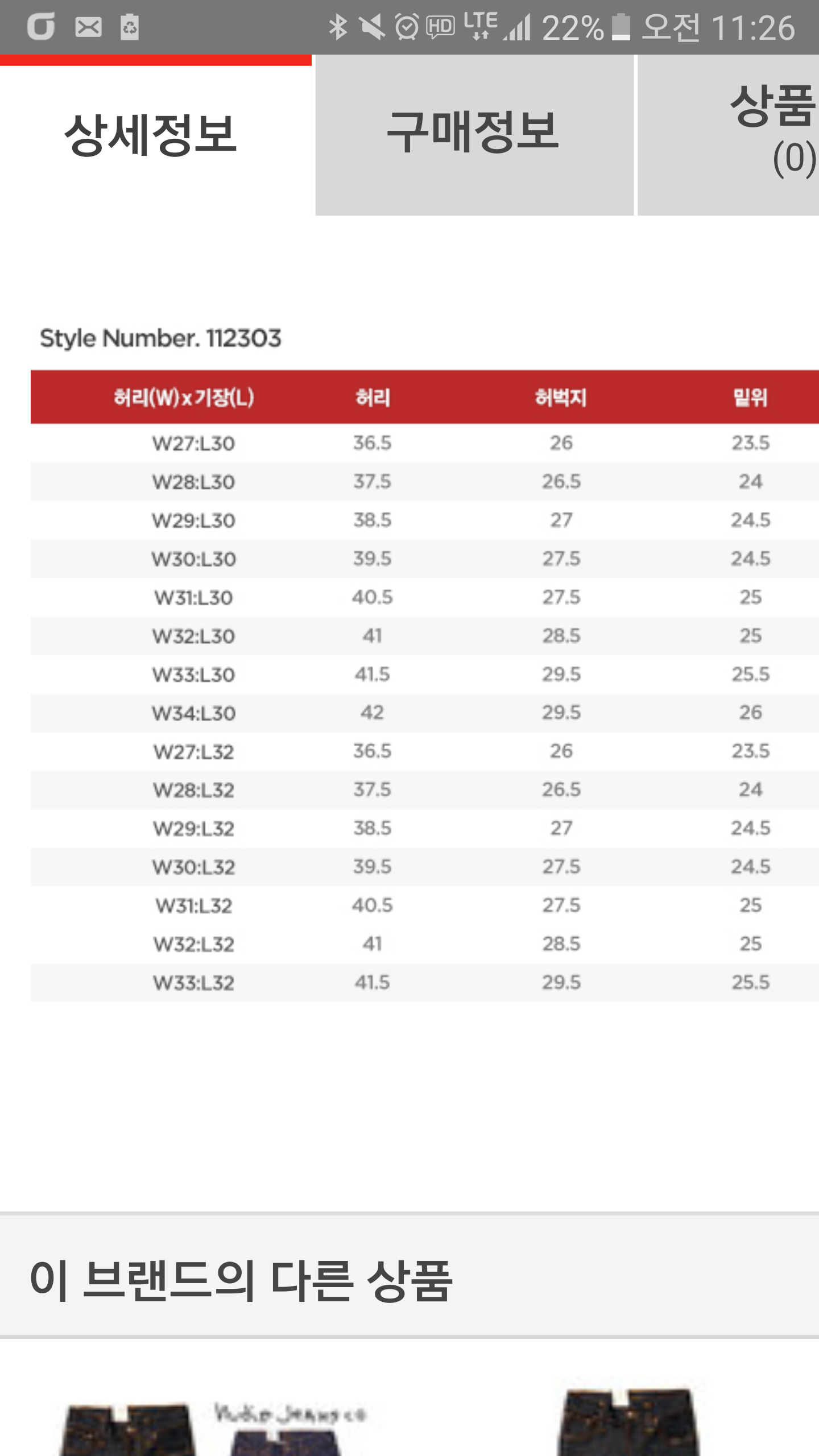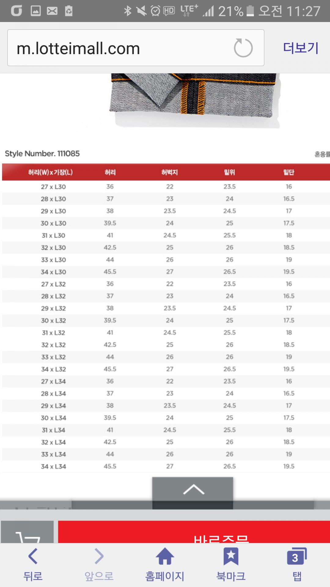 허벅지가 22에서 시작하는데 위 모델은 27에서 시작하더라고요 ㅜㅜ