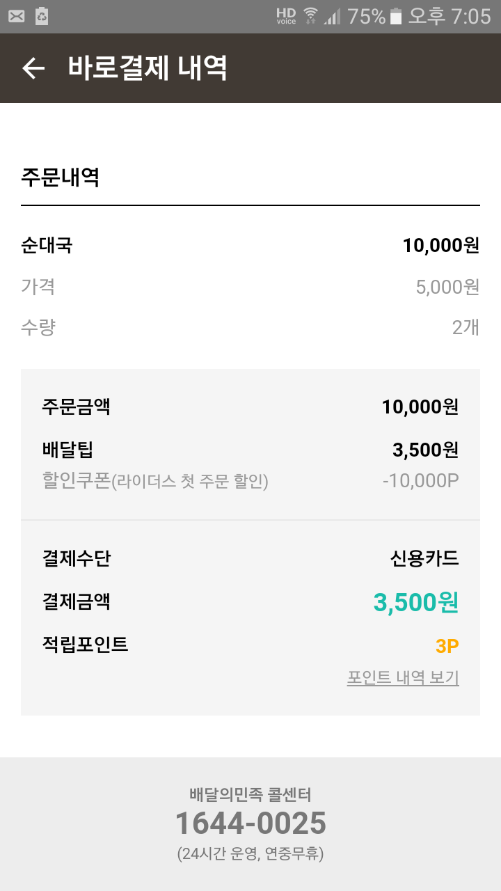 오우 배민 라이더스 주문했어요 ㅋㅋ