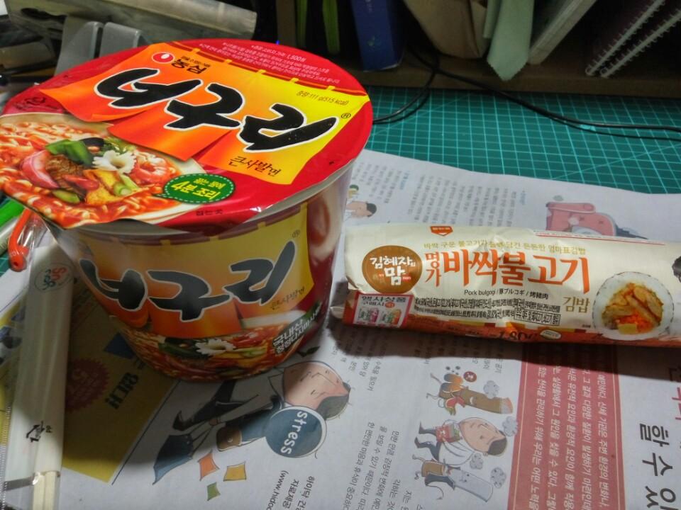 집앞 GS25에서 너구리랑 명가바싹불고기....