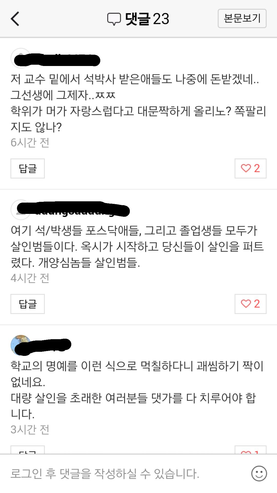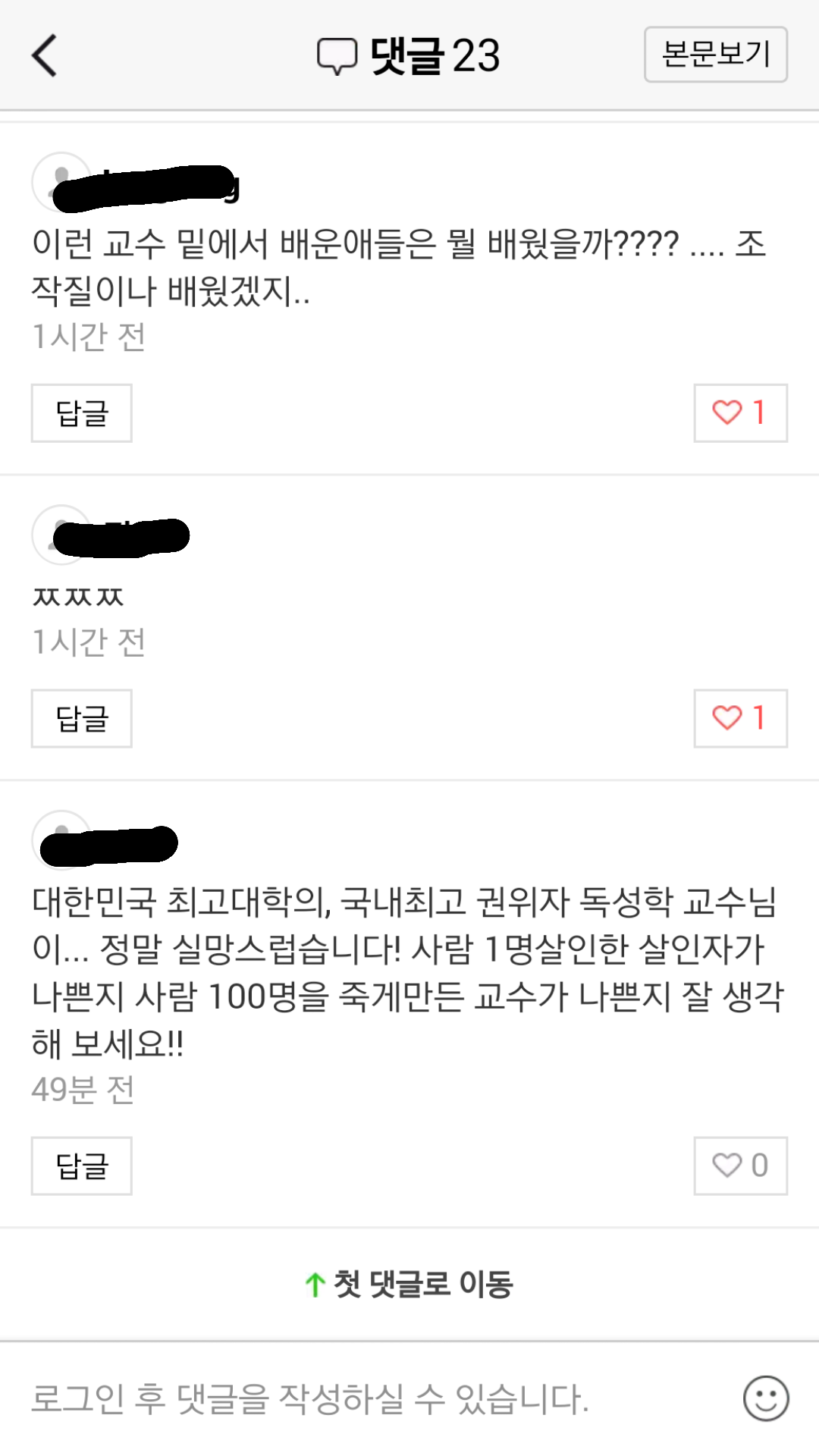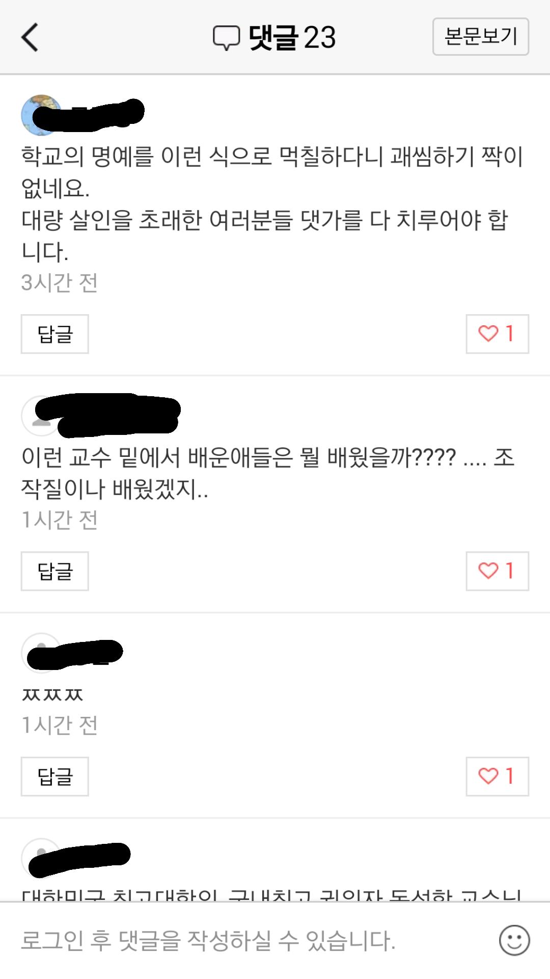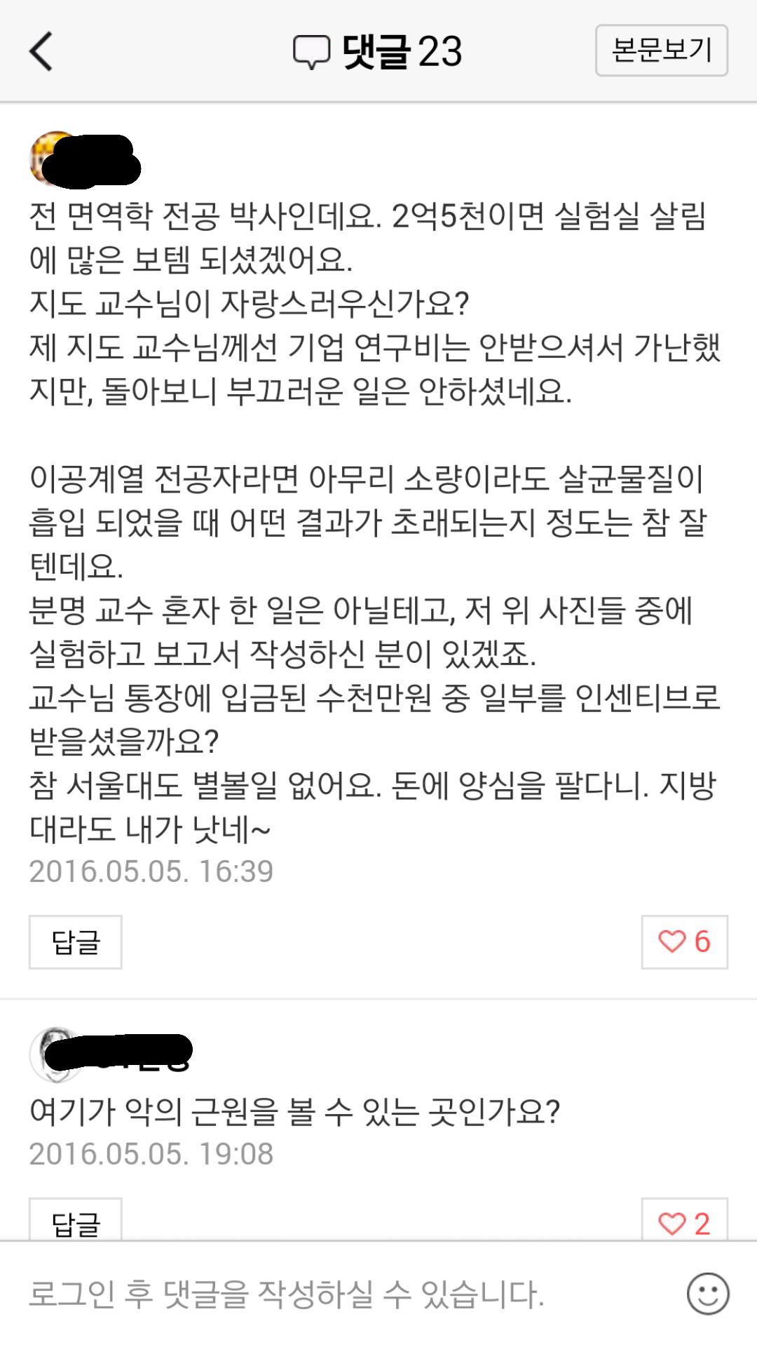 옥시 보고서 조작 서울대 교수 블로그 댓글 입니다