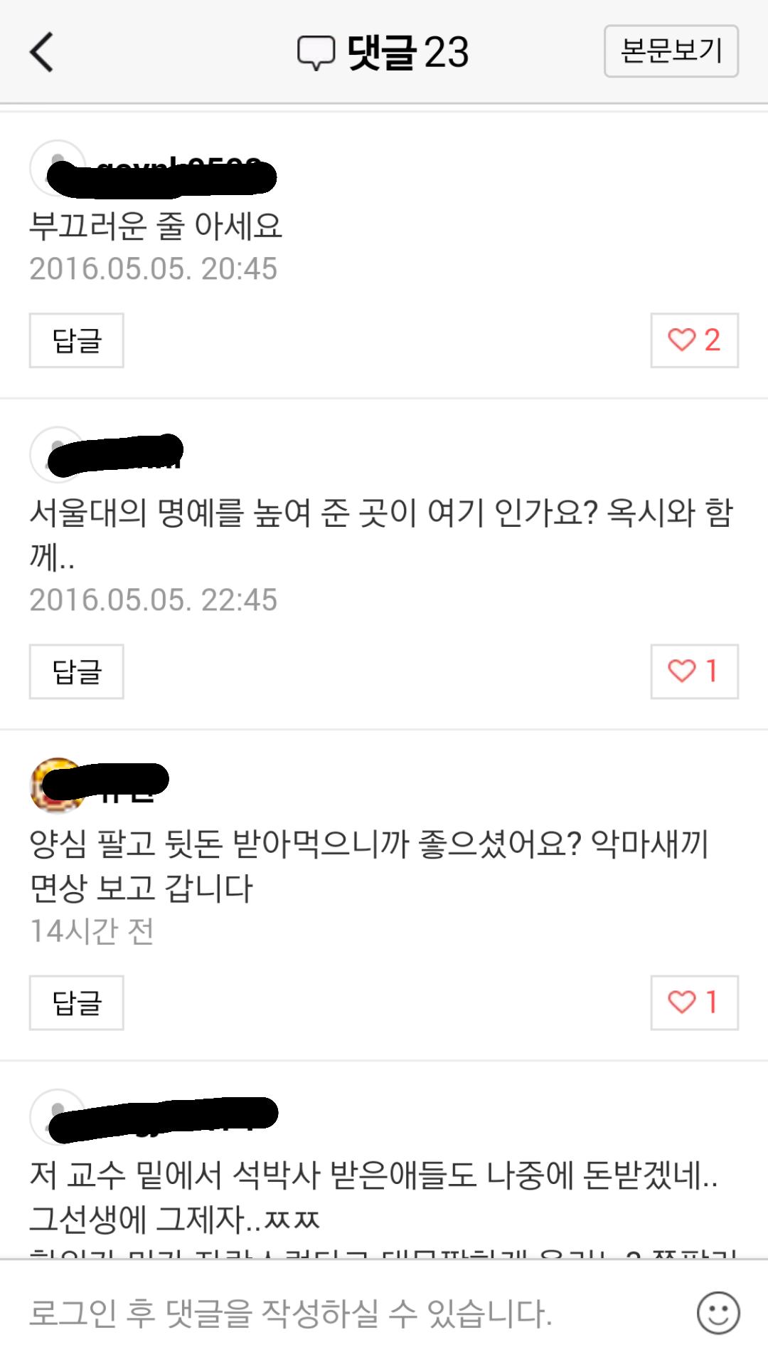 옥시 보고서 조작 서울대 교수 블로그 댓글 입니다 > 자유게시판