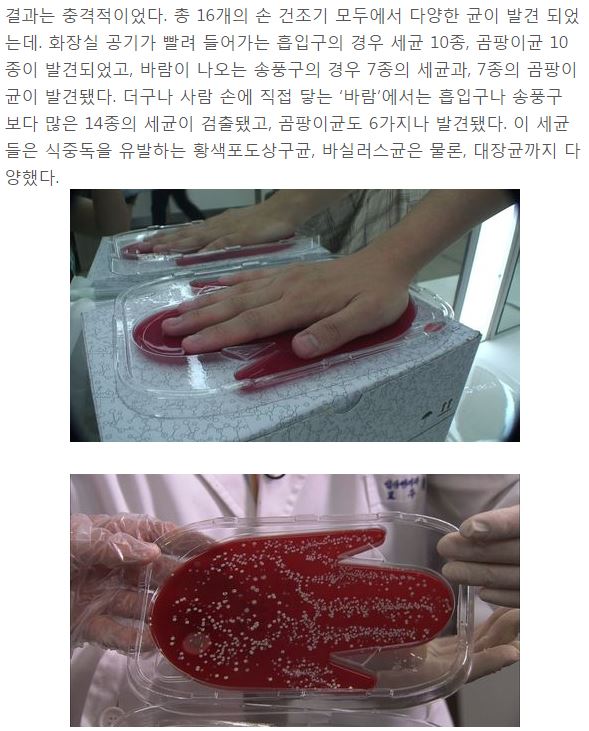 건조기 관리가 미흡해서 내부에 생긴 곰팡이균을 비롯한 각종 세균들이 손에 그대로 묻는답니다