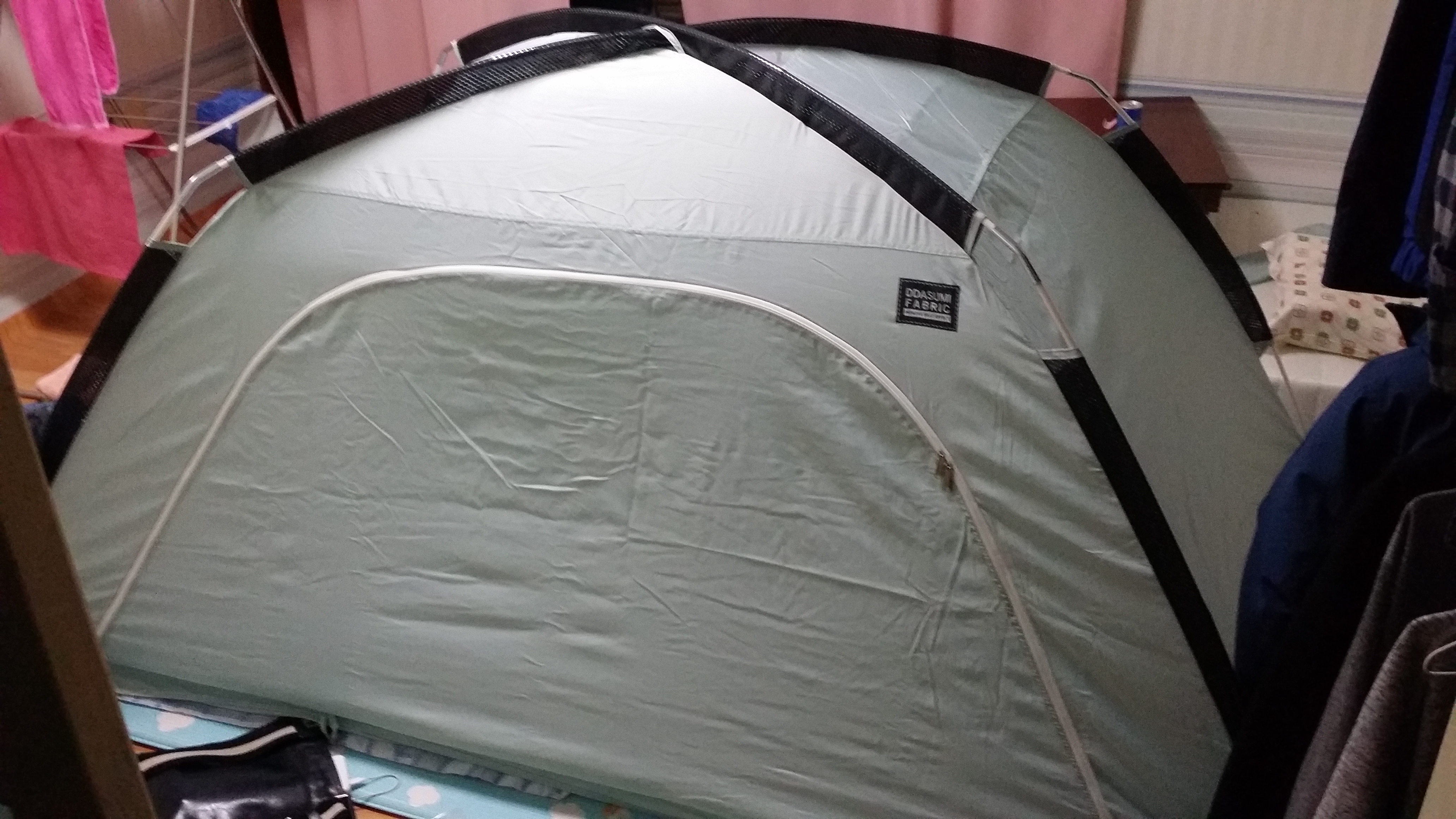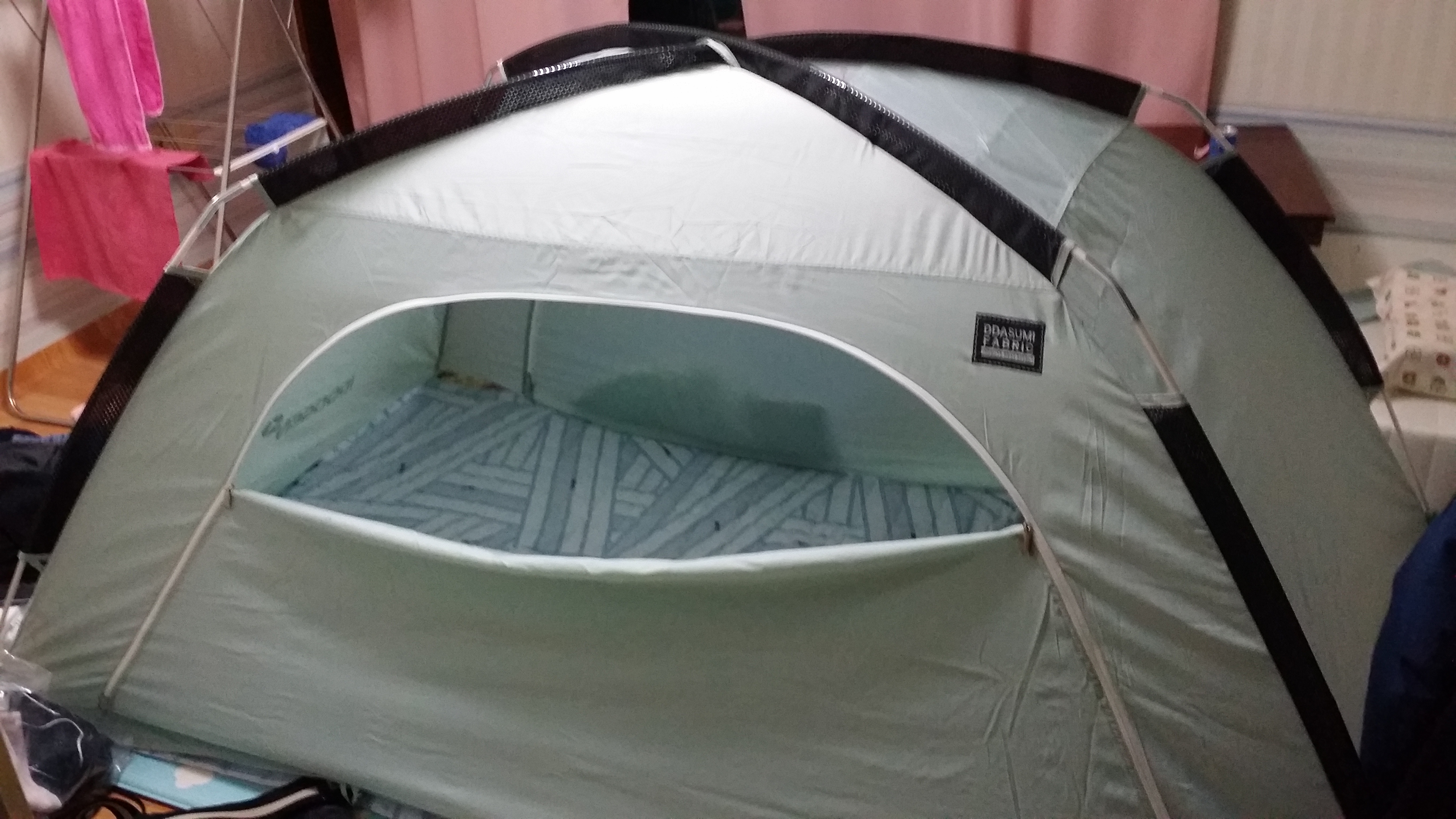 침대 위에 설치 했습니다. 속에 있으면 나만의 공간 아늑 하네요. | ||