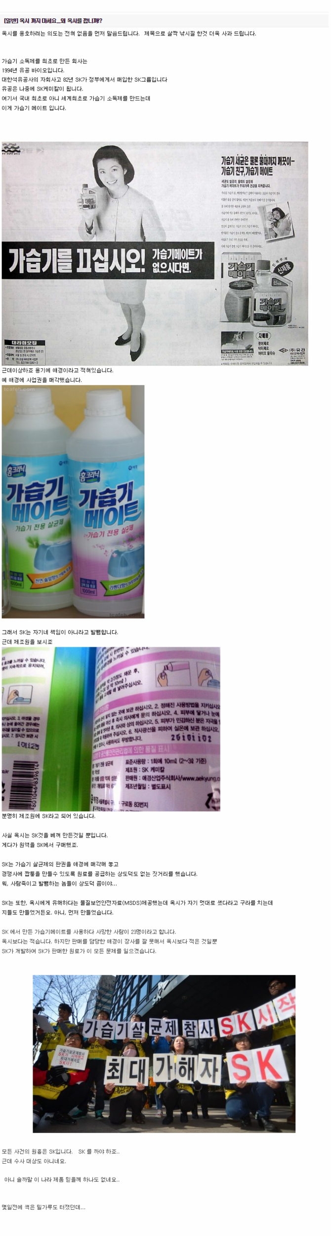 말없이 올라가는 추천수. 옥시와는 다르게(?) 국내 대기업이라 일단 덮어주고 시작인걸까요. |