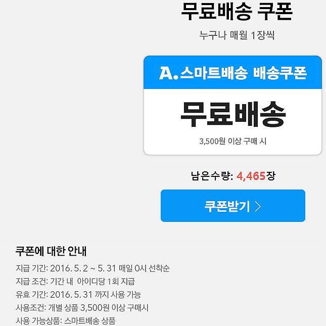화면 중간에 나오는 스마트 배송 쿠폰 버튼을 눌러야 합니다.