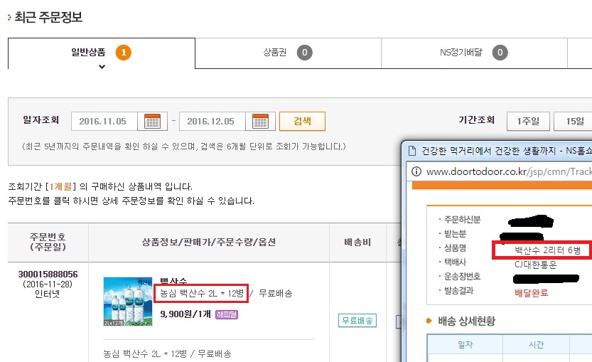 NS몰 미리줌 3천포인트로 백산수 생수 12병 주문했었는데..