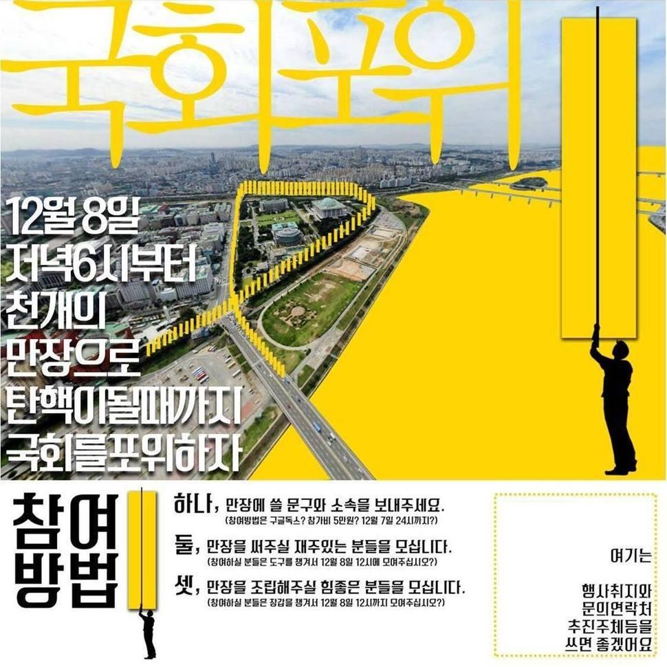 8일 저녁부터 탄핵안이 가결될 때까지 1000개의 만장으로 국회를 포위하자