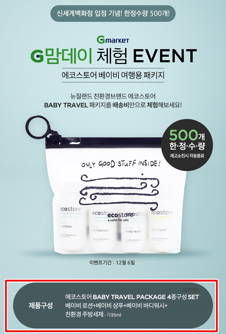 [10시오픈] 에코스토어 여행용 4종패키지 (2,500원/무료)        선착순 500명