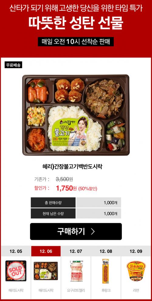[10시오픈] 혜리 간장불고기 백반도시락 (1,750원/무료)      선착순 1000개