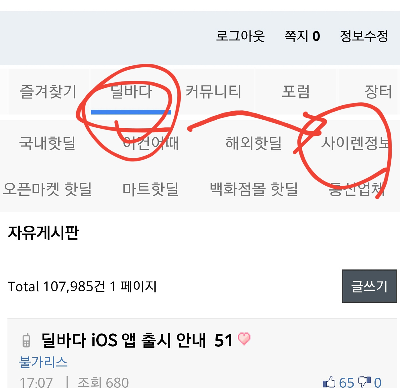 딜바다는 사이렌 게시판이라는 곳이 있습니다