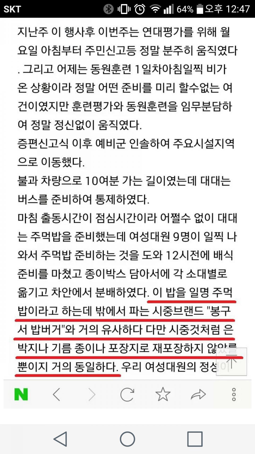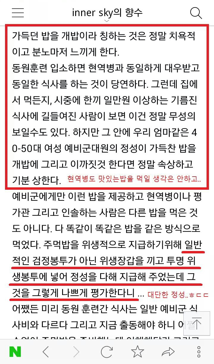 그리 정성가득한 밥 당신이나 다 처드시지 뭔 예비군까지 챙겨먹이려 그러시나? |