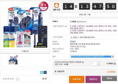 [9시오픈] 쉬크 하이드로5 프리미엄 면도기 체험팩 (2,500원/무료)        선착순 50명