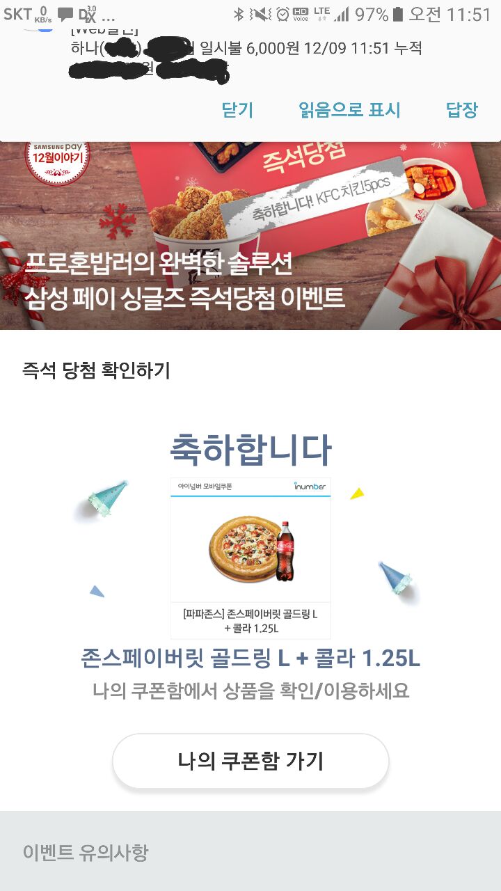 6처넌짜리 점심먹고 당첨확인 눌렀는데!!