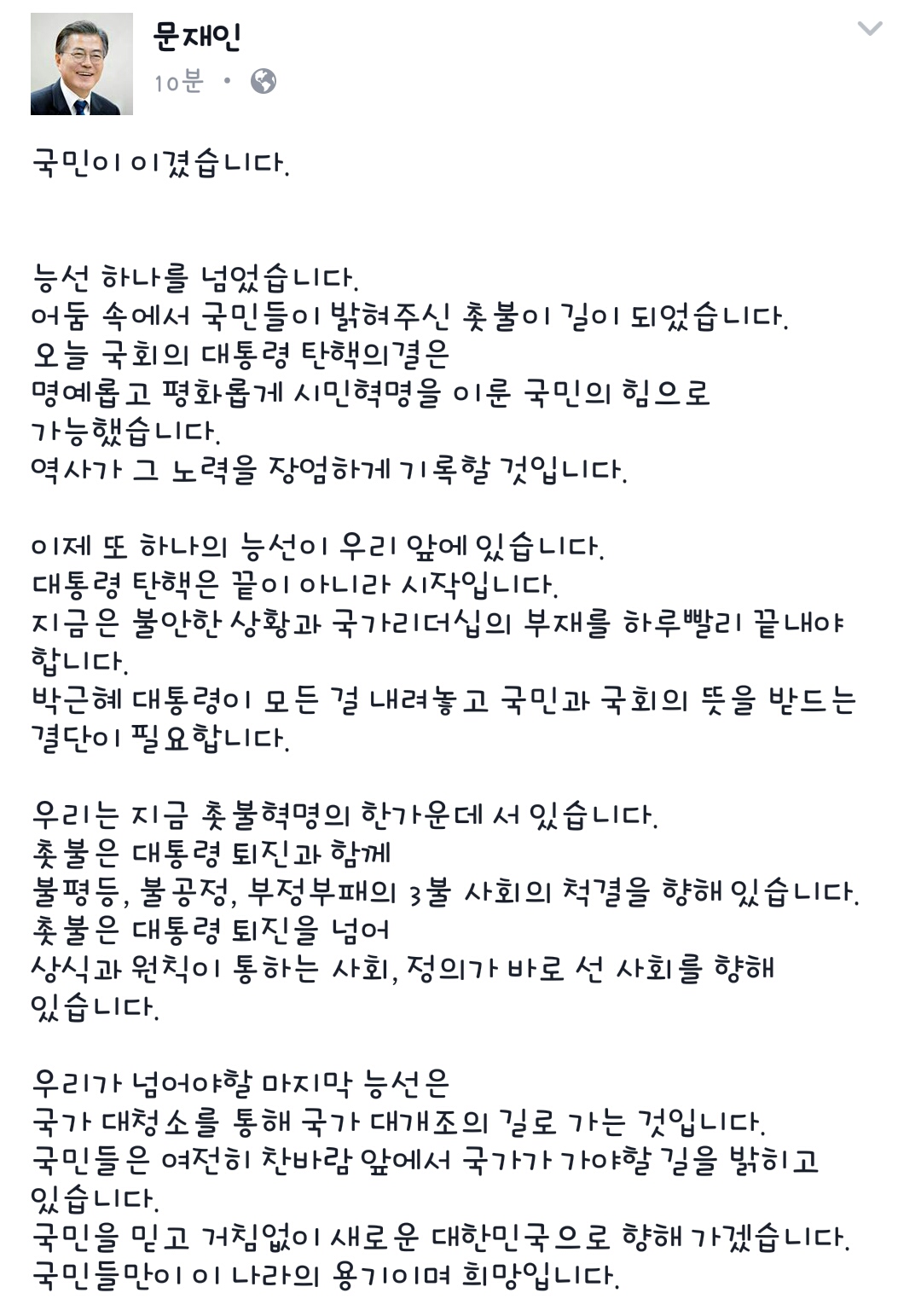 이러나 저러나 나라 새로 엎고 다시 만드려면 문재인만한 인물이 지금은 없네요! 힘내서 꼭 이 썩은나라 뒤집어 엎었으면 좋겠습니다. |