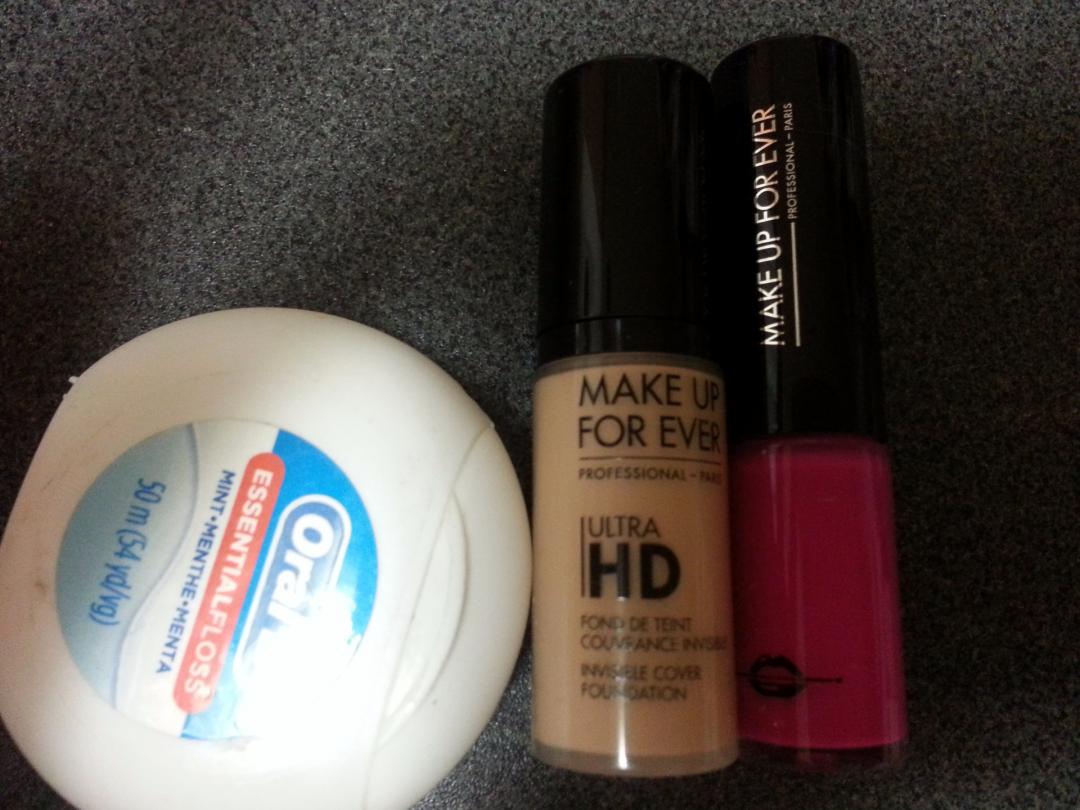 옆의 치실은 구성품 아니구요 동그란 화장품들 굴러감 방지용으로 놨습니다