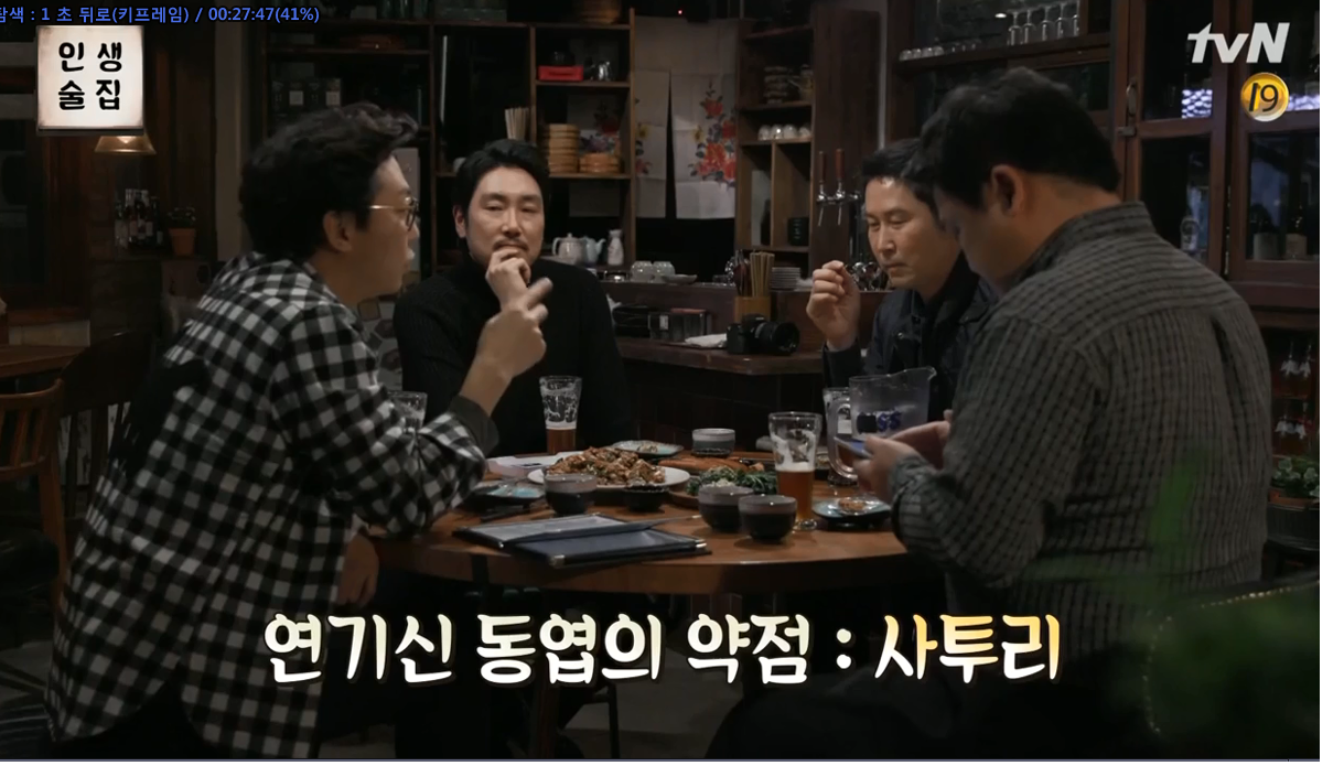 그냥 남자들끼리 초대 손님 한명 놓고 술자리에서 세상사는 이야기 하는 프로인거 같아요.
