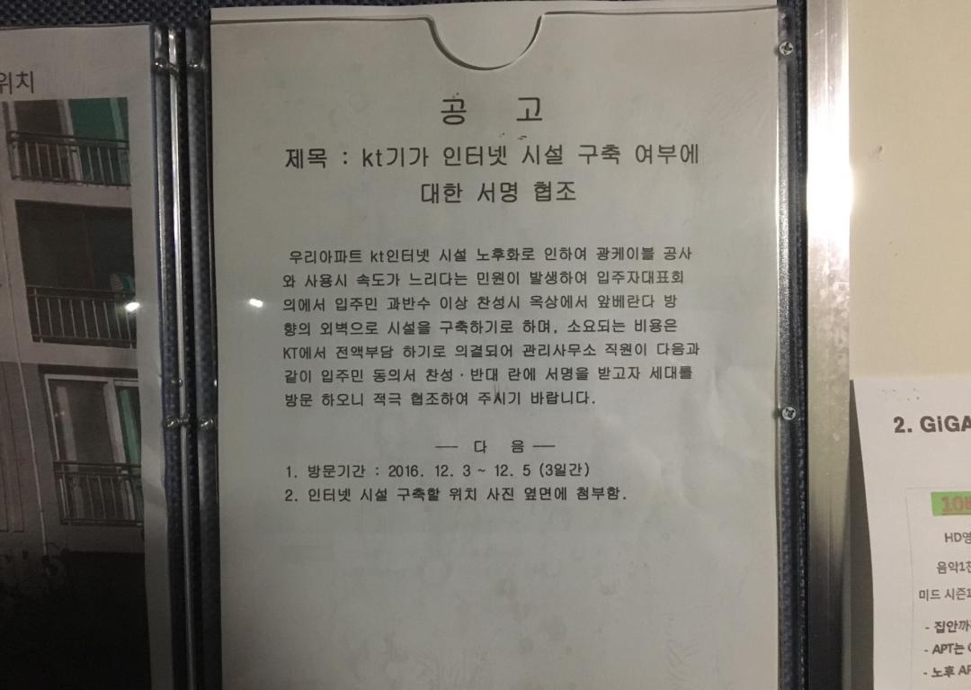 사진올린것처럼 설문시행했는데 압도적으로 찬성이 나왔습니다ㅎㅎㅎ 이제 개떡같은 vdsl 곧 벗어날 수 있을거같아요