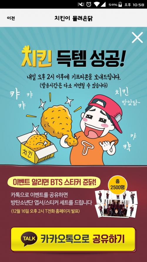 오늘 당첨된거라 아직 못받아서 확실히는 모르지만 skt꺼라 기프티콘으로 올거 같은데..