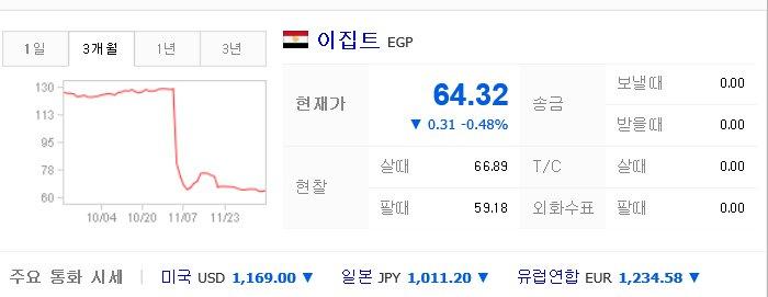 이유는 이집트 정치 불안등의 이유로 환율이 반토막 났기때문...