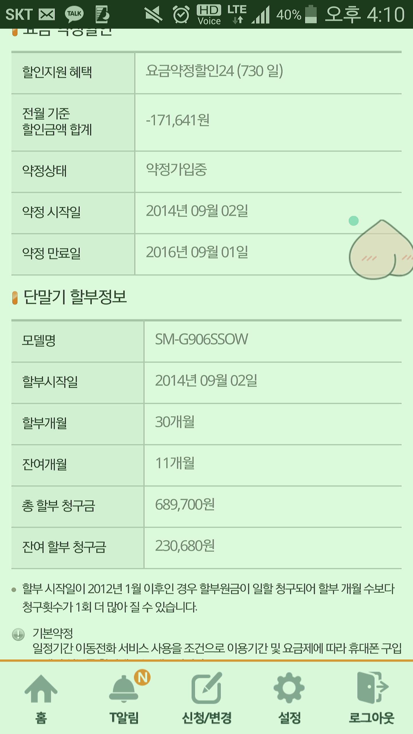 핸드폰교체 : 2016.9.2 그전은 위약금