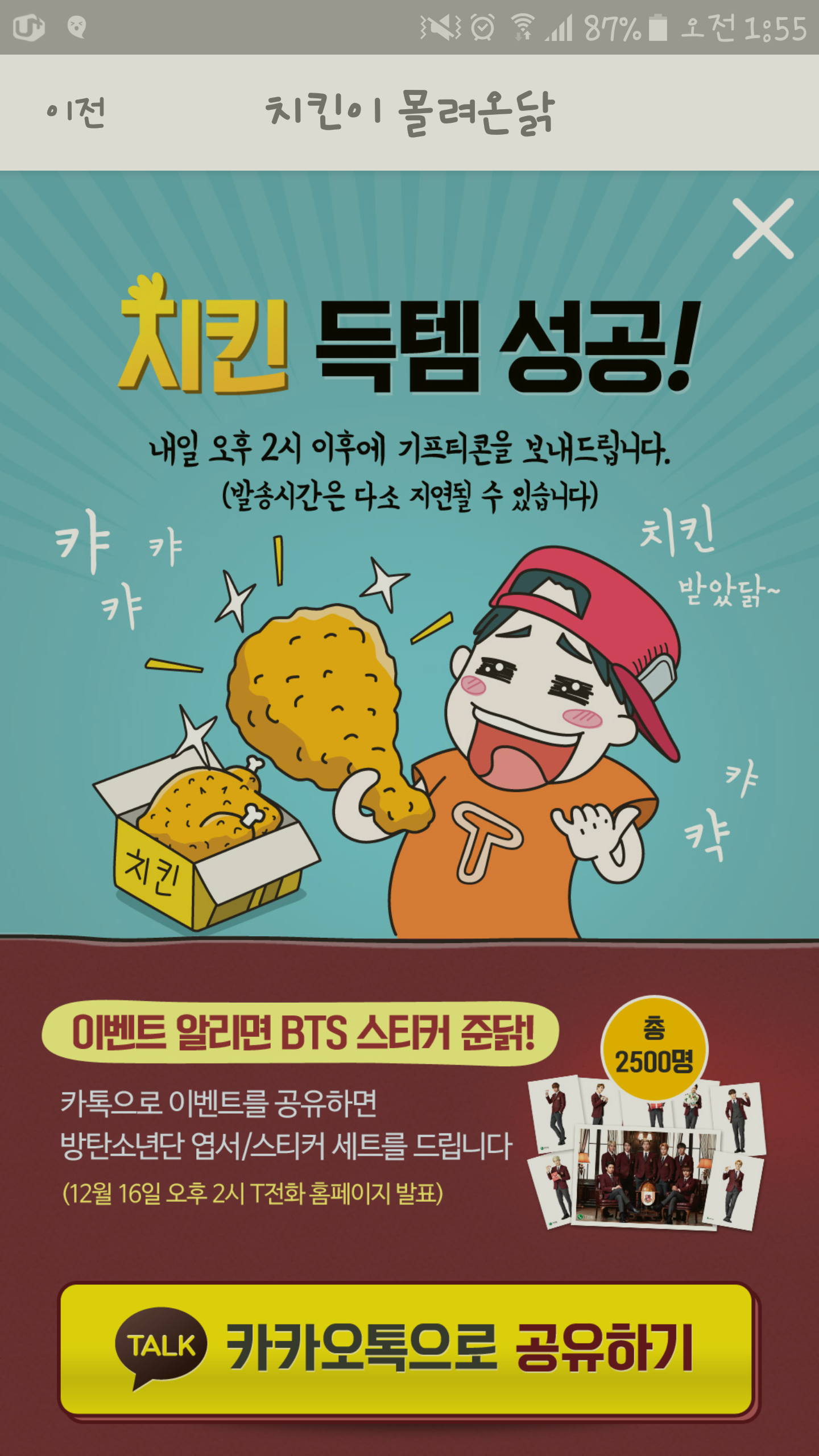 헐 저도 티전화 당첨요^^ > 자유게시판
