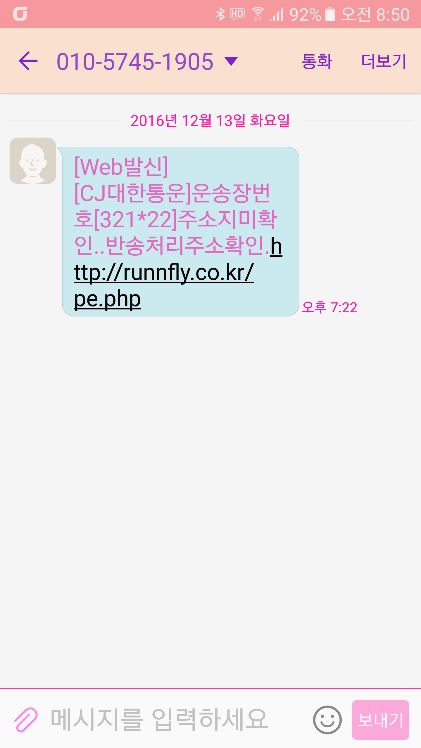 택배 올게 없는 날 먼저 받아보면 스팸인줄 바로 알겠지만...받을게 있는 날은 혹 할것 같네요...그냥 전 문자 통해 오는 건 다 링크 안 타보는 걸로 해야겠어요...무섭네요... |