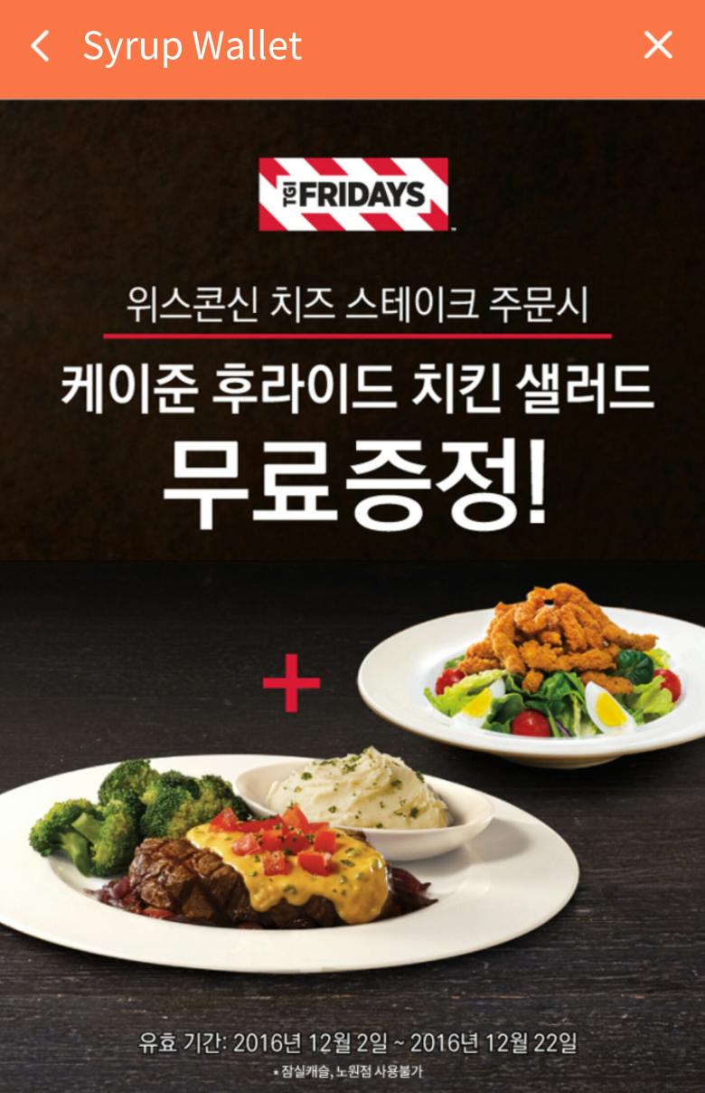 tgi 위스콘신 치즈 스테이크 시키면 케이준 샐러드 무료로 주는거 맞나요? > 자유게시판