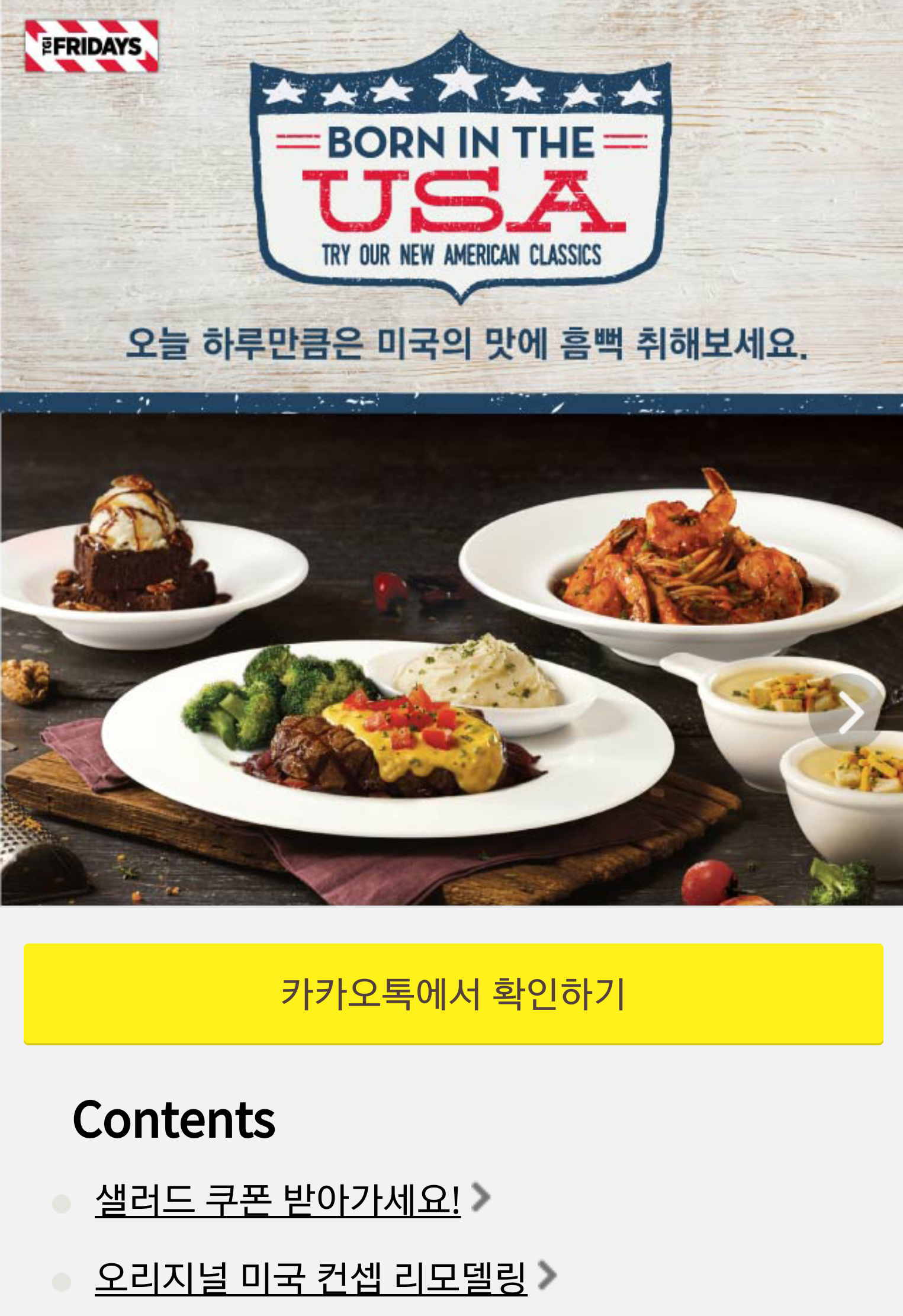 tgi 위스콘신 스테이크 주문시 샐러드 쿠폰 받아가세요.