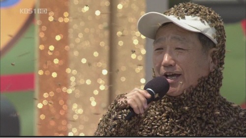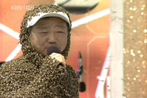 아래 아저씨 입에 벌 들어간건가요? | ||