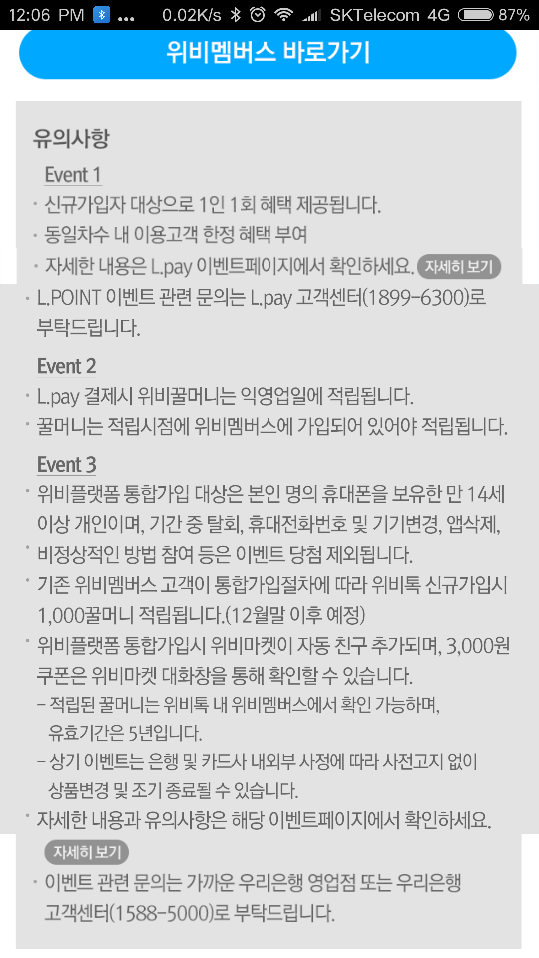 위비톡 위비마켓내용이 이벤트 2.3이고...