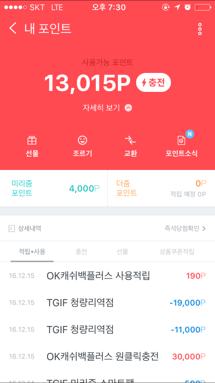 결제하려고하니 미리줌 계산 안된다고 해서 오케이케시백으로 결제하는거라고 하고 우선 결제 했습니다