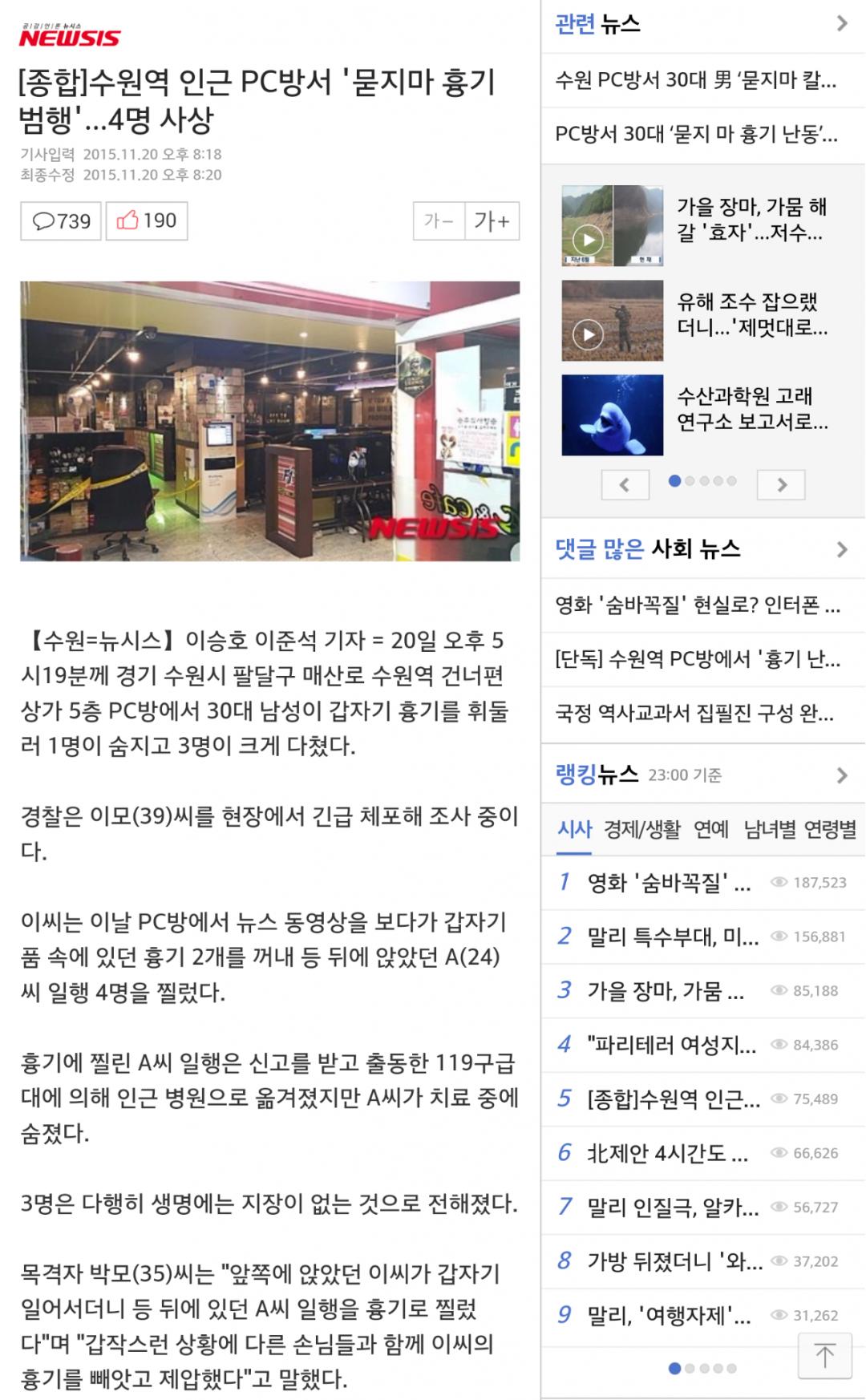 수원 PC방에서 묻지마 흉기 범죄 발생 > 자유게시판